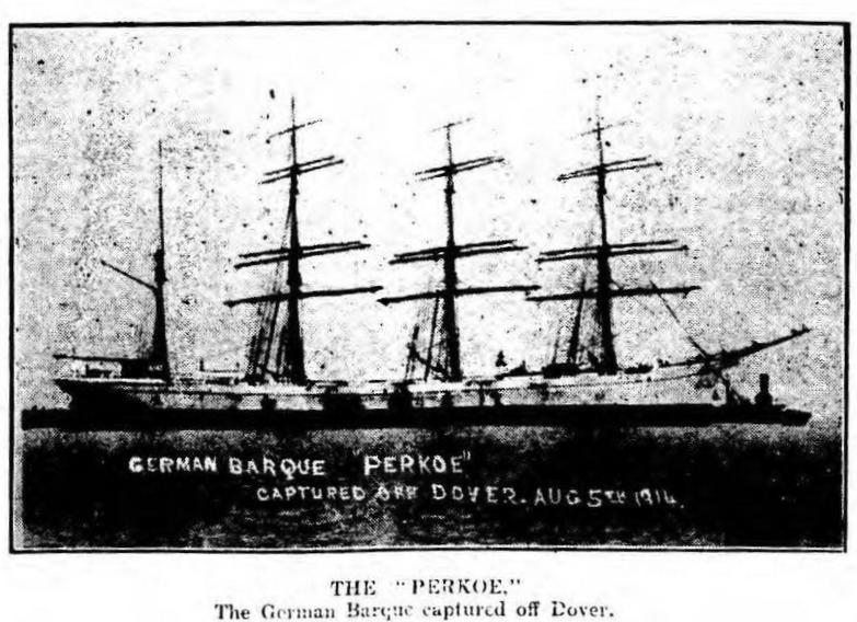 German Barque “Perkoe” captured at Dover, 5th August 1914 and guarded by